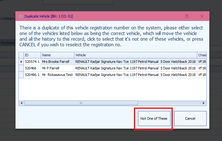 Note: If the system prompts that the vehicle already exists on the system, select the option for Not One of These
