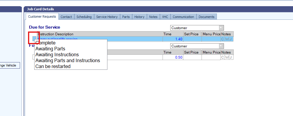 Mark as Complete: Within the request status window, update the status to mark it as 'Complete' or 'Parts Booked In' (depending on your system settings).