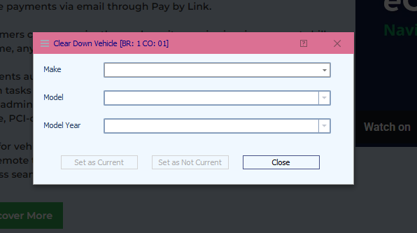 - Use the dropdown menus to choose the Make (manufacturer) and the specific Model and Model Year you wish to remove.