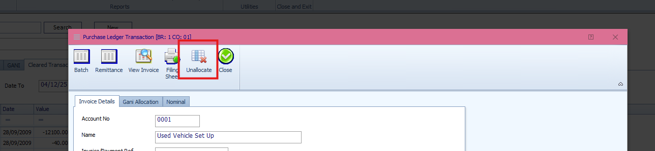 You can unallocate a payment or invoice directly from the Cleared Transactions tab in the Purchase Ledger.