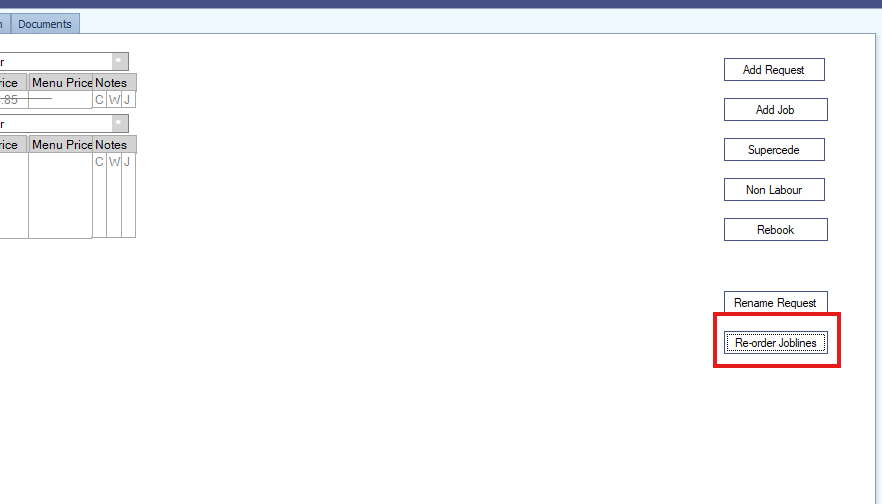 Select 'Re-order Joblines': Locate and click this button (usually found in the header or action menu) to open the management interface.