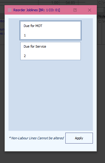 Save Changes: Click Apply to finalise the new order and update the workshop job view.
